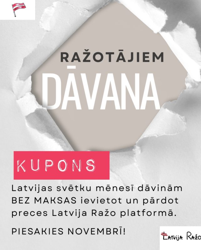 Dāvinām Tev 1 gadu bezmaksas iespēju pārdot savas preces, ievietojot līdz pat 50 produktiem, izmantojot īpašo kuponu KĻAVA-12-AKCIJA.
