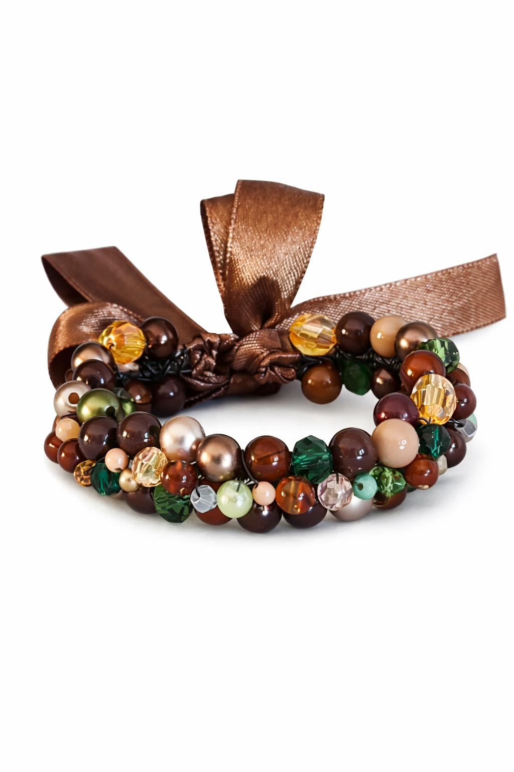 Akrila pērlīšu rokassprādze ar brūnu lentu