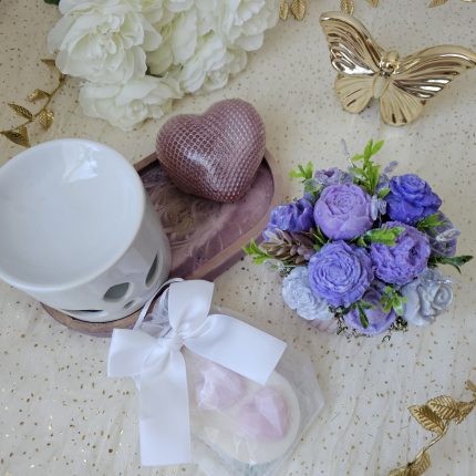 Sojas vaska svece ar lavandas aromātu. Iesaiņota kastītē kā dāvana mīļajiem.